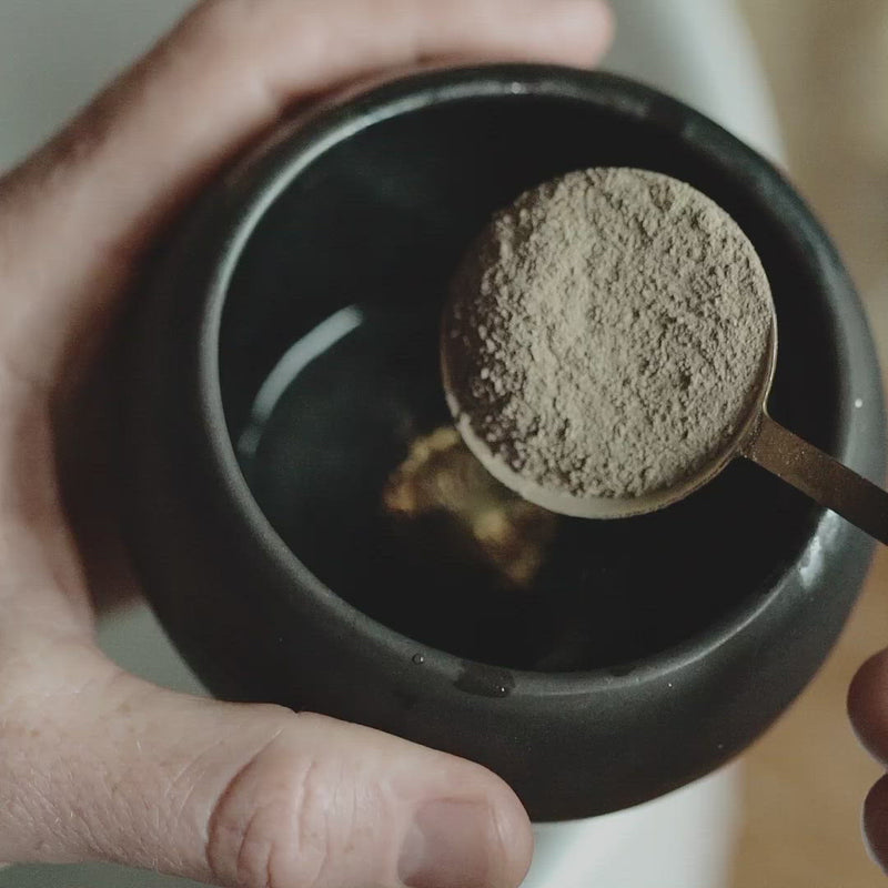 Measure 1 tsp. of The Clean Dirt’s concentrated powder and blend with just shy of equal parts water to form a soft mousse. Massage into damp skin with the pads of your fingertips, ideally while in the shower, to allow the heat and steam to soften and prepare skin. Leave for a few minutes, then face into the water to easily wash the formula away, massaging as you go.