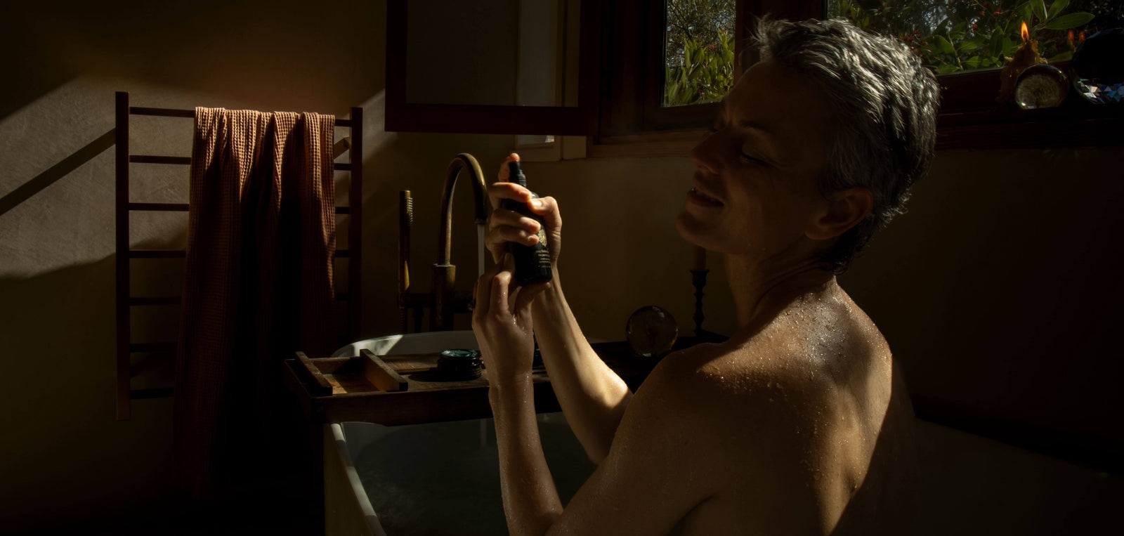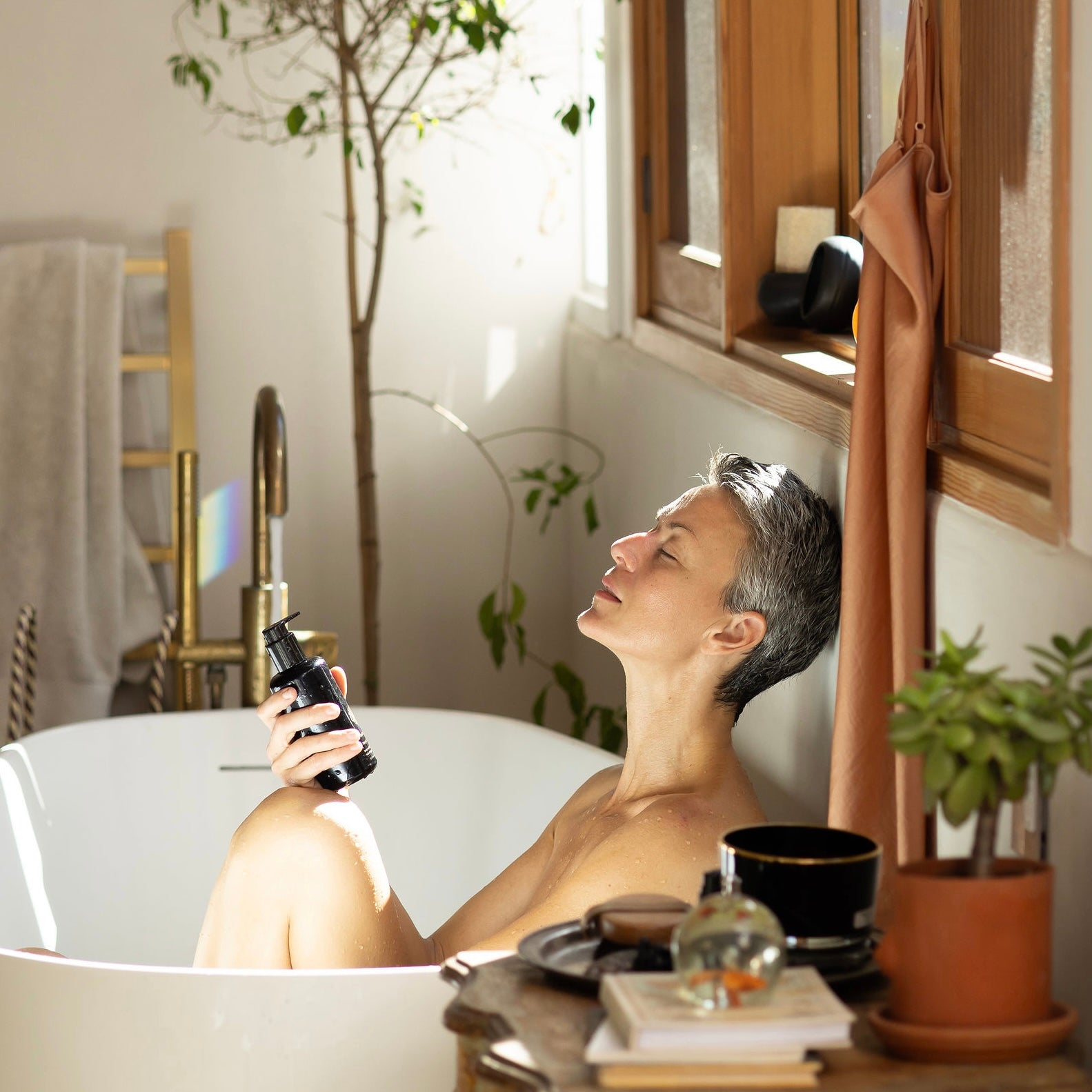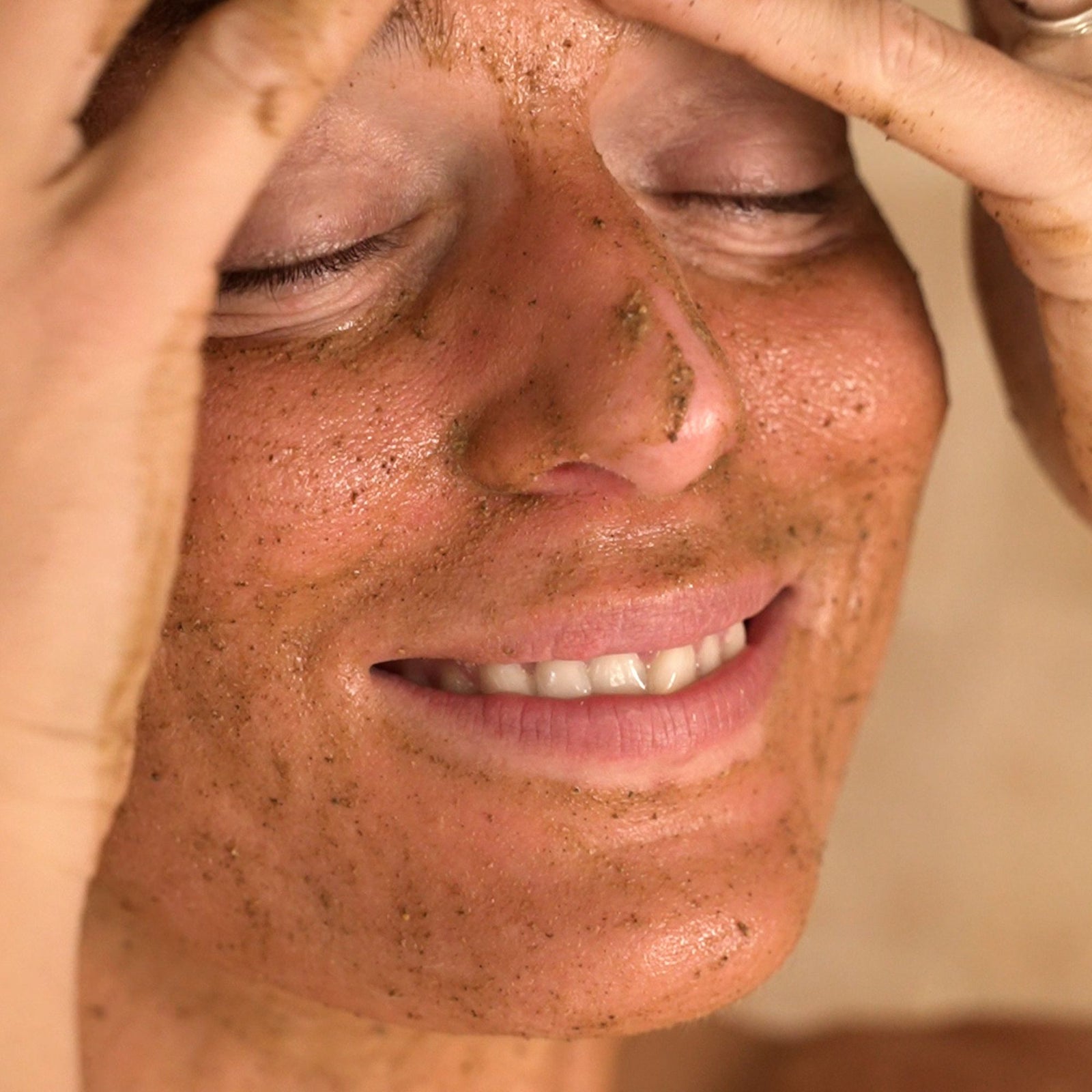 Blend 1 tsp. of The Clean Dirt with equal parts water in our treatment bowl to bring to a fizzing mousse consistency. Add in 6 pumps of The Pendulum Potion and a dollop of The Honey Mud, mixing everything together, then brush over your warm, damp skin. Allow to sit for a few minutes before rinsing as you continue your massage. Finish with a blend of The Blue Cocoon, The Youth Dew, and The Jasmine Garden, massaging all three as one into your warm, wet skin.