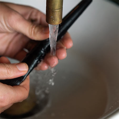 - Gently squeeze any remaining water from the bristles as you reshape, then lay the clean brush flat to rest over your treatment bowl, allowing airflow as it dries overnight.